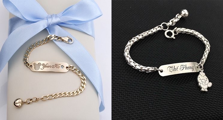 Ngoài ra, các bậc phụ huynh còn có thể chọn cho bé chiếc lắc khắc tên cho bé, như một vật kỉ niệm đánh dấu từng cột mốc quan trọng trong quá trình trưởng thành của con.
